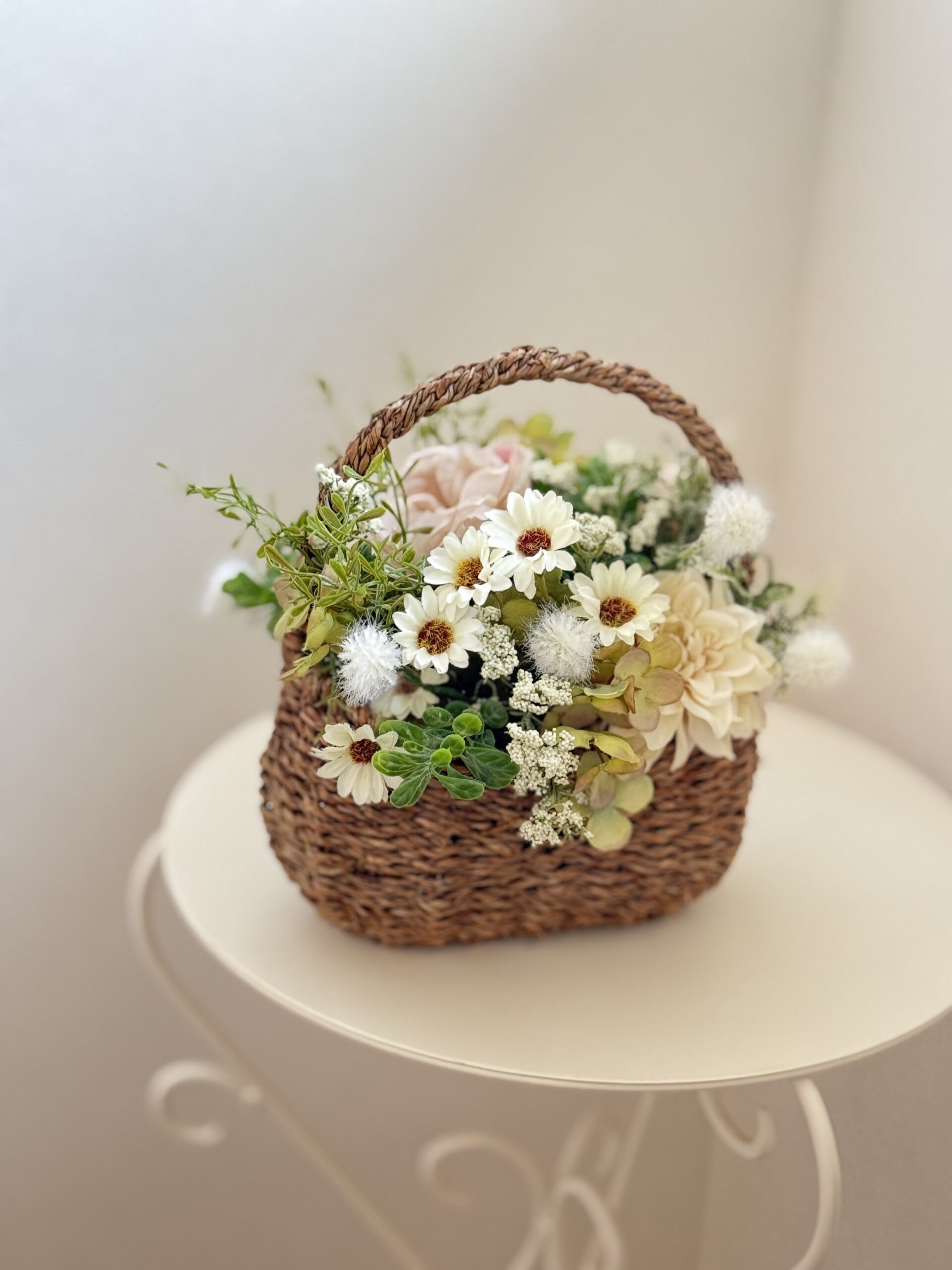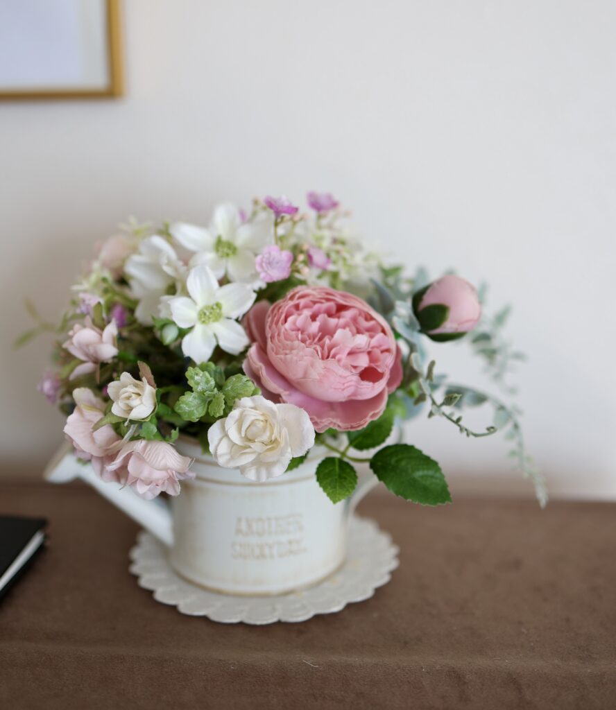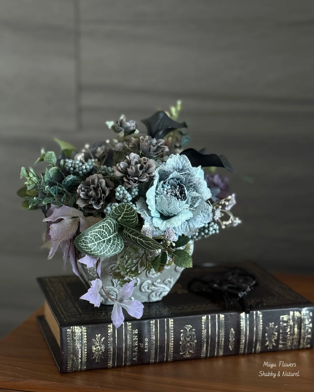 お花教室のレッスンだけでなく、アーティフィシャルフラワー(高品質な造花)を使用した、オーダーメイドのフラワーアレンジメント制作も承っております。