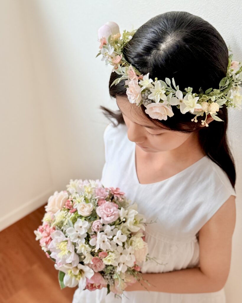 大切な1日を、もっと特別に。このレッスンでは、アーティフィシャルフラワー(高品質な造花)を使って、オリジナルのブーケ・花冠・ブートニア・ウェルカムボードなど1アイテムを1日で手作りします。