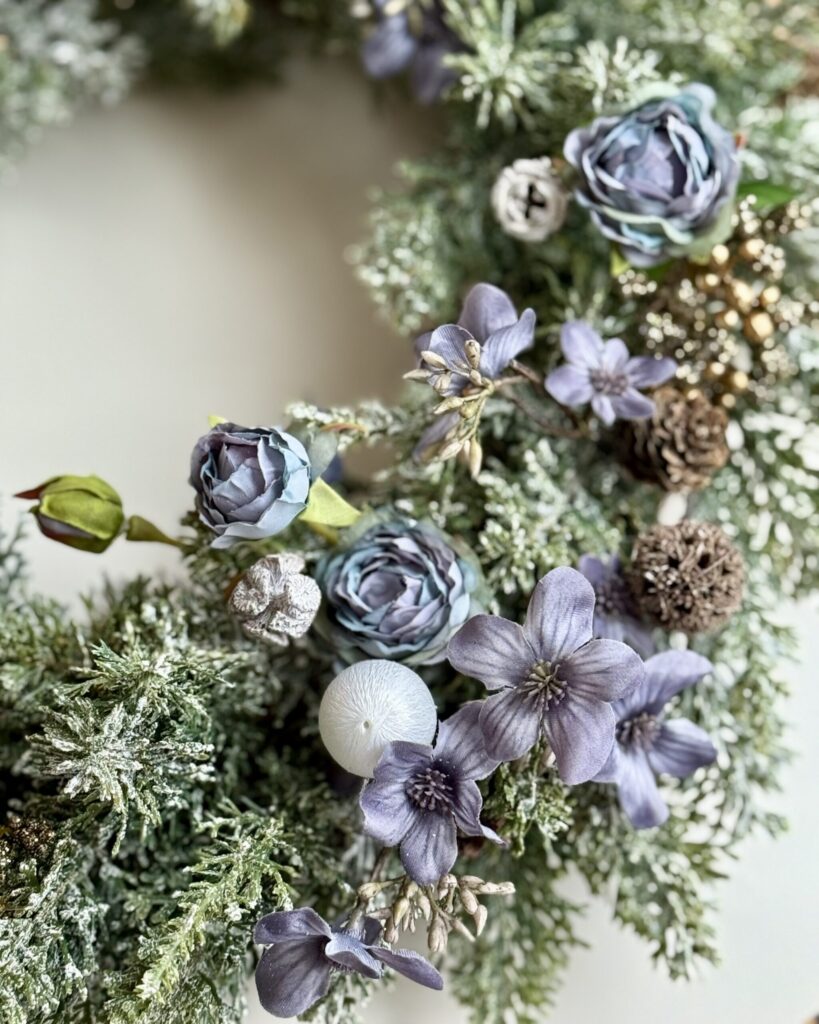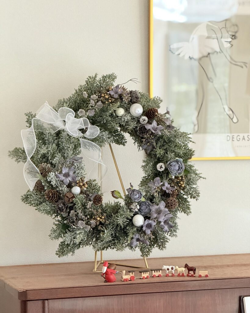 娘とつくった、冬のやさしいシルバーブルーリース