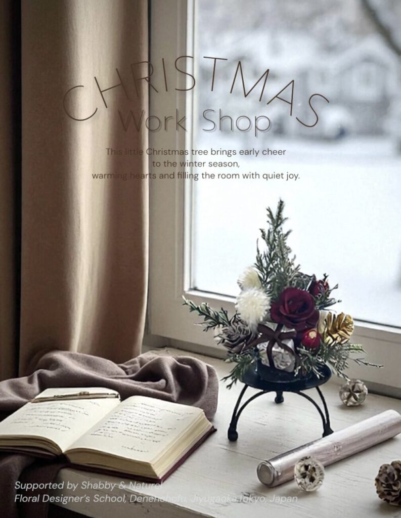 • 内容:アーティフィシャルフラワーを使ったミニクリスマスツリー制作(初心者向け・シャビナチュ初体験の方歓迎)